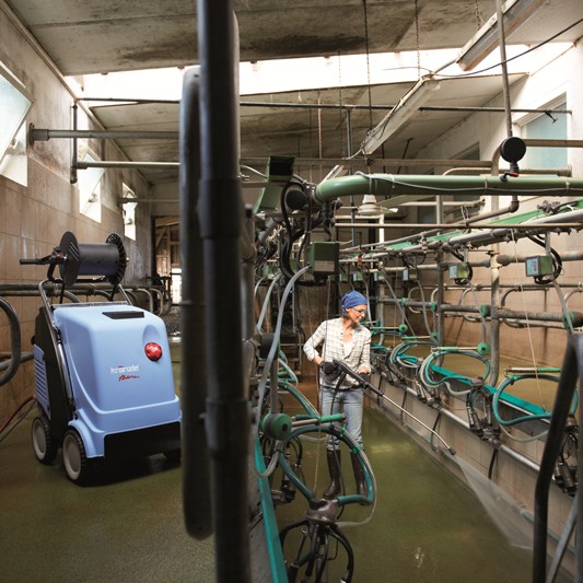 Ausführung mit Zubehör-Stecksystem D12 mit Schlauchtrommel Der neue Kränzle-therm C ist für professionell harten Einsatz konzipiert. Überall wo es gilt, hartnäckige und grobe Verschmutzungen gründlich und problemlos zu entfernen, entfaltet der neue Kränzle-therm C seine Stärken: Druck und Spritzwassertemperatur sind je nach Einsatzbereich stufenlos einstellbar. In Abhängigkeit vom eingestellten Druck variiert die starke Literleistung. Bei Extremverschmutzungen ist die integrierte Dampfstufe einsetzbar. Ein Gerät von Profis für Profis. Integriertes Fahrwerk, Anschlußkabel 7,5 m, Stahlgewebe-Hochdruckschlauch, 15 m, Schlauchtrommel, Sicherheits-Abschaltpistole, Total-Stop-Einrichtung mit verzögerter Motorabschaltung, stufenlose Temperaturregelung, stufenlose Druckregulierung von außen , eingebaute Dampfstufe, Vorbelüftung der Brennkammer, 25 l Brennstofftank mit Vorratsüberwachung, Messingpumpenkopf, Trockenlaufsicherheit, keramikbeschichtete Pumpenplunger, Sprühlanze mit Edelstahlrohr, Reinigungsmittelansaugung mit Filter, 4-fach Sicherheitssystem mit Überlastschutz Arbeitsdruck: 30-150 bar zul. Überdruck: 170 bar Wasserleistung: 15 l/min. / 900 l/h Motordrehzahl: 1400 U/min Heißwasserabgabe: 12 - 80 °C Dampfstufe: max. 140 °C Langsamläufer-Motor Heizleistung: 60 kW Gewicht: 179 kg Düsengröße: D25055 elektr. Anschluß: 400V / 8,7 A / 4,8 kW Lieferung inklusive: 15m Stahlgewebe-Hochdruckschlauch, Schlauchtrommel, Sicherheits-Abschaltpistole Starlet 3, Edelstahllanze mit Flachstrahldüse D25055 MASCHINOX ist offizieller Kränzle Service- und Handelspartner