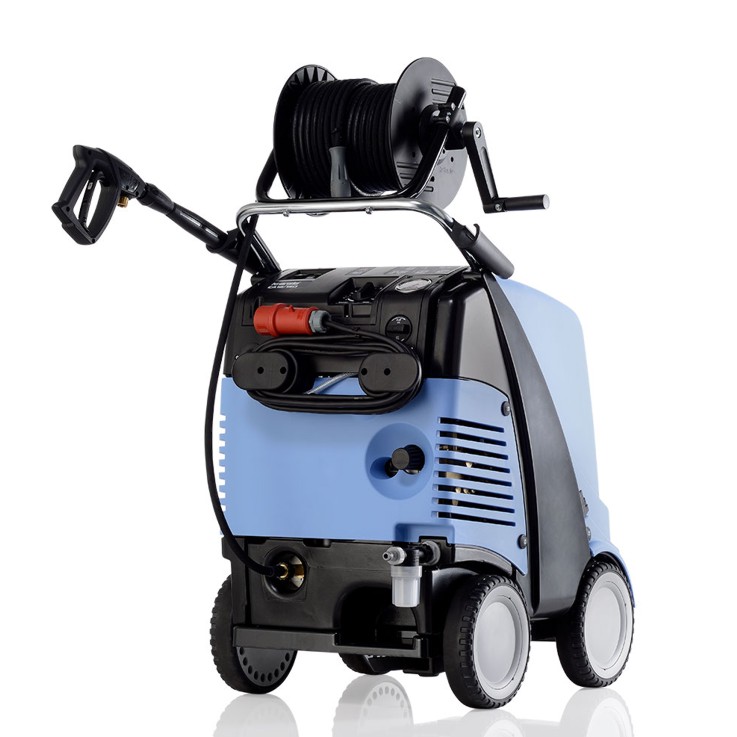 KRÄNZLE therm CA Heißwasser-Hochdruckreiniger. Integriertes Fahrwerk, Anschlußkabel 7,5 m, Stahlgewebe-Hochdruckschlauch, 15 m, Schlauchtrommel, Sicherheits-Abschaltpistole, Total-Stop-Einrichtung, stufenlose Temperaturregelung, stufenlose Druckregulierung von außen, eingebaute Dampfstufe, Vorbelüftung der Brennkammer, 25 l Brennstofftank, Messingpumpenkopf, Trockenlaufsicherheit, keramikbeschichtete Pumpenplunger, Sprühlanze mit Edelstahlrohr, Reinigungsmittelansaugung mit Filter