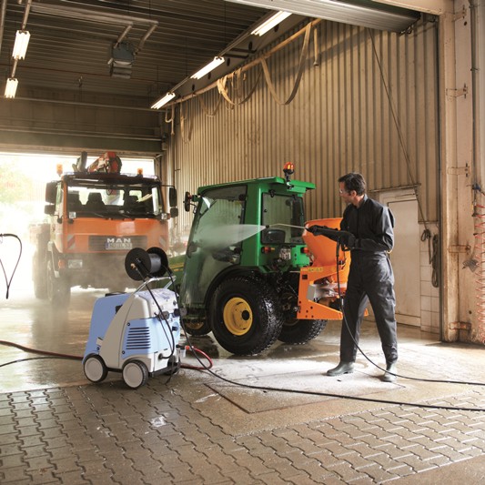 Der neue Kränzle-therm C ist für professionell harten Einsatz konzipiert. Überall wo es gilt, hartnäckige und grobe Verschmutzungen gründlich und problemlos zu entfernen, entfaltet der neue Kränzle-therm C seine Stärken: Druck und Spritzwassertemperatur sind je nach Einsatzbereich stufenlos einstellbar. In Abhängigkeit vom eingestellten Druck variiert die starke Literleistung. Bei Extremverschmutzungen ist die integrierte Dampfstufe einsetzbar. Ein Gerät von Profis für Profis. Integriertes Fahrwerk, Anschlußkabel 7,5 m, Stahlgewebe-Hochdruckschlauch, 15 m, Schlauchtrommel, Sicherheits-Abschaltpistole, Total-Stop-Einrichtung mit verzögerter Motorabschaltung, stufenlose Temperaturregelung, stufenlose Druckregulierung von außen , eingebaute Dampfstufe, Vorbelüftung der Brennkammer, 25 l Brennstofftank mit Vorratsüberwachung, Messingpumpenkopf, Trockenlaufsicherheit, keramikbeschichtete Pumpenplunger, Sprühlanze mit Edelstahlrohr, Reinigungsmittelansaugung mit Filter, 4-fach Sicherheitssystem mit Überlastschutz