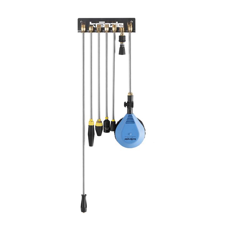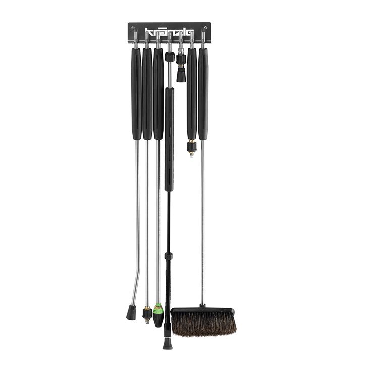 platzsparende Aufbewahrung von bis zu sieben Lanzen und Waschbürsten inkl. Pistolenhalterung D12
