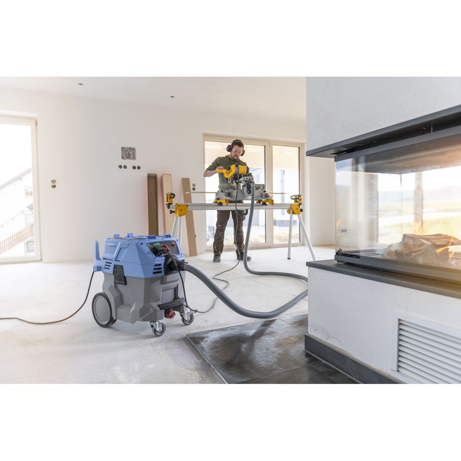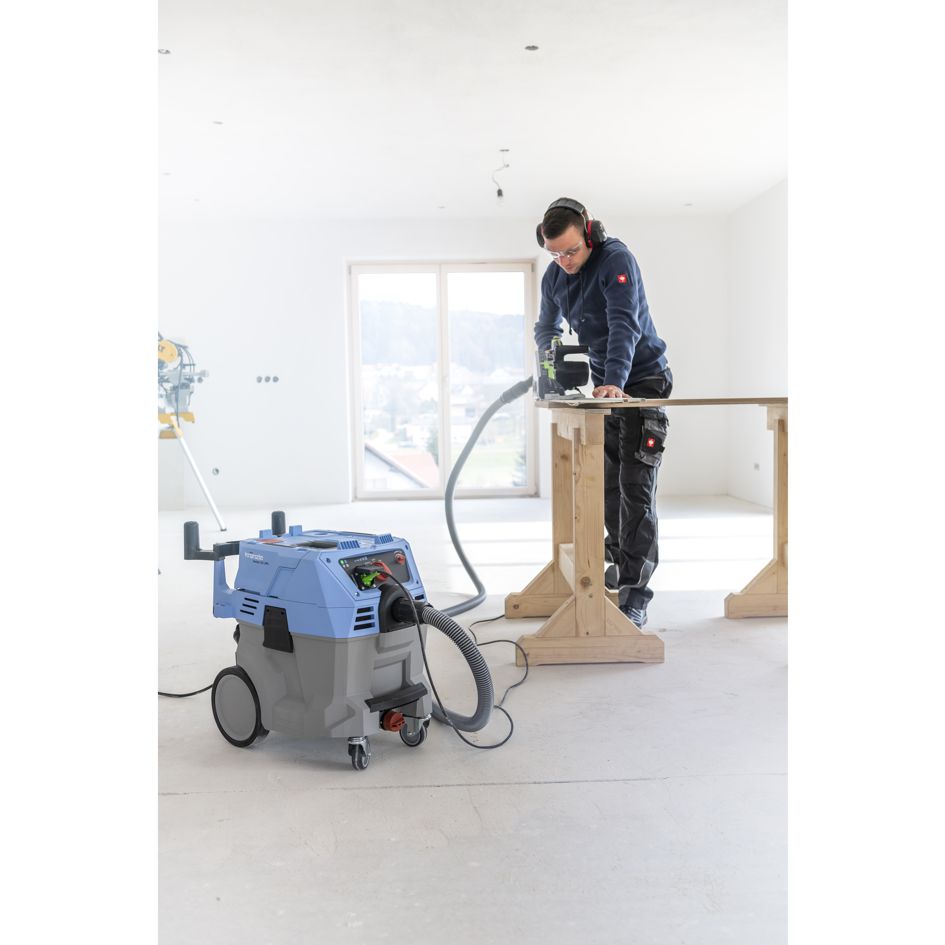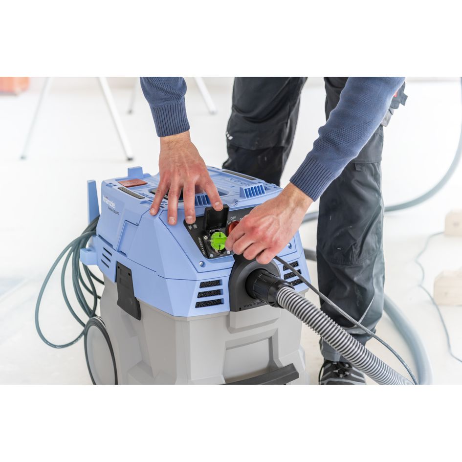 Der Ventos 42 L/PC von Kränzle ist für alle Reinigungsaufgaben bestens gewappnet. Das übersichtliche Bedienpanel mit integrierter Steckdose für Elektrowerkzeuge erlaubt die stufenlose Einstellung der Saugleistung. Ein umfangreiches Zubehörprogramm ermöglicht gründliches Arbeiten, und die kompakten Abmessungen machen diesen Industriesauger flexibel einsetzbar. Darüber hinaus bieten das extralange Netzkabel und der Saugschlauch einen großen Aktionsradius.