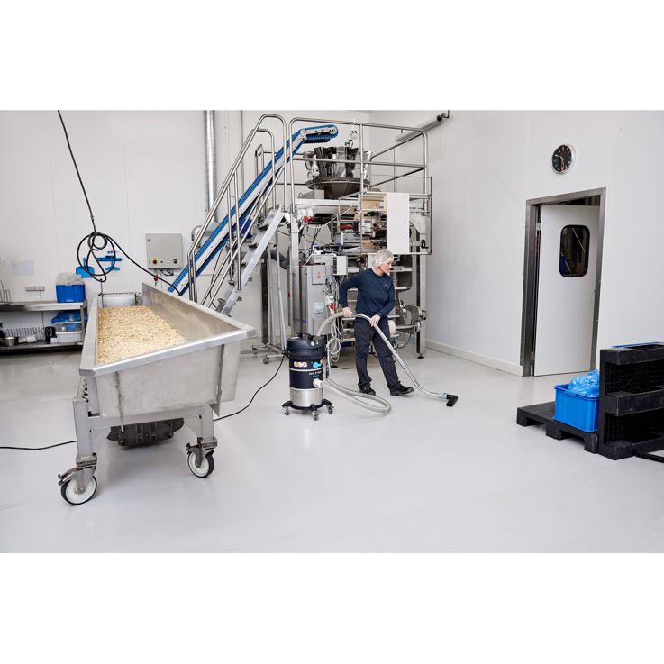 Die ACD Modelle VHS011 mit Pull & Clean können große Materialbelastungen mit hoher gleichbleibender Leistung und ohne Verbrauchsmaterialien bewältigen. Bei normalem Gebrauch kann das Pull & Clean-System die Lebensdauer des konischen Patronenfilters erheblich verlängern. Diese Modelle VHS011 eignen sich perfekt für Reinigungsaufgaben in der Lebensmittelindustrie, bei denen die meisten Pulver brennbar sind, und sind für die Reinigung von Lebensmittelmaschinen konzipiert, wie vertikale Verpackungsmaschinen, Förderbänder, V-Mischer usw. sowie für die allgemeine Reinigung von Böden, Tischen und Einrichtungen.