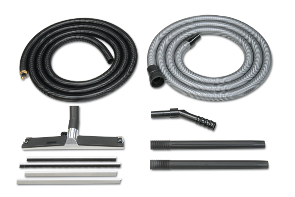 Inkl. Zubehör: 5m Saugschlauch, 5m Abpumpschlauch, Handrohr, Profi-Bodendüse inkl. 2 Einsätzen, Nassfiltersack, Schaumstofffilter