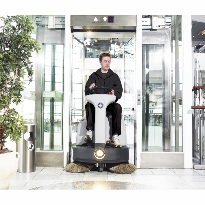 Eine kompakte, besonders wendige, leistungsstarke Aufsitzkehrmaschine. Die SR1000 S arbeitet besonders effizient und ist so kompakt gebaut, dass sie überall Platz findet - sogar in einem Fahrstuhl. Durch ihre hervorragende Wendigkeit können auch schmale Ecken und Kanten optimal gereinigt werden.