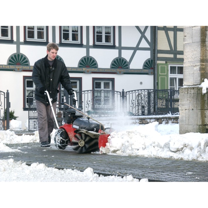 Im Vergleich zum Einstiegsmodell bietet diese Profi-Maschine mehr Komfort und liefert eine höhere Flächenleistung. Das 3-Gang-Getriebe besitzt eine Schnellumschaltung von vorwärts auf rückwärts. Diesen Vorteil schöpfen Sie beim Schneeräumen voll aus. Im Nu sind größere Flächen gründlich gereinigt. Arbeitsbreite: 80 cm Bürstendurchmesser: 30 cm Flächenleistung: bis 3900 m²/h Fahrgeschwindigkeit: max. 4,9 km/h inklusive Universal-Doppelbesatzbürste Hergestellt in Deutschland Die Lieferung erfolgt aus Transportgründen ohne Motorölfüllung. Vor dem Start des Motors muß das Kurbelgehäuse, wie in der Betriebsanleitung beschrieben mit vollsynthetisches Öl befüllt werden. Lieferung im Versandkarton auf Palette.