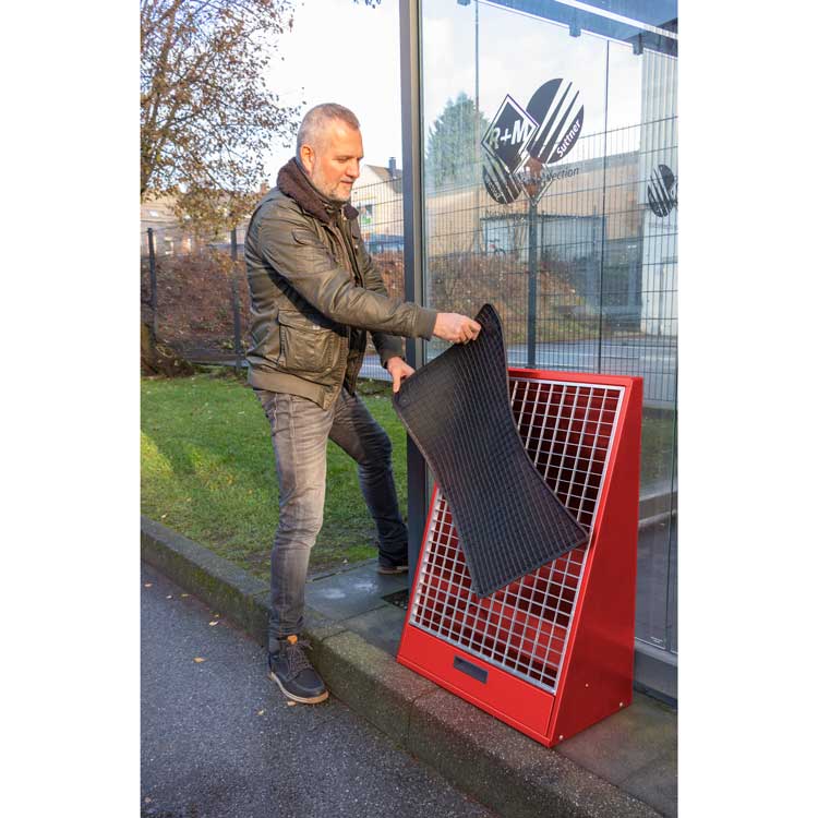 Fußmattenklopfer mit Gitterrost und Staubschublade, ABS-Griffmulde